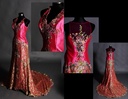 玫瑰金緞面花卉刺繡澎裙晚禮服