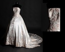 白緞金繡無肩拖尾婚紗